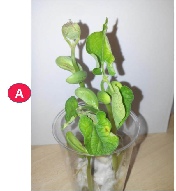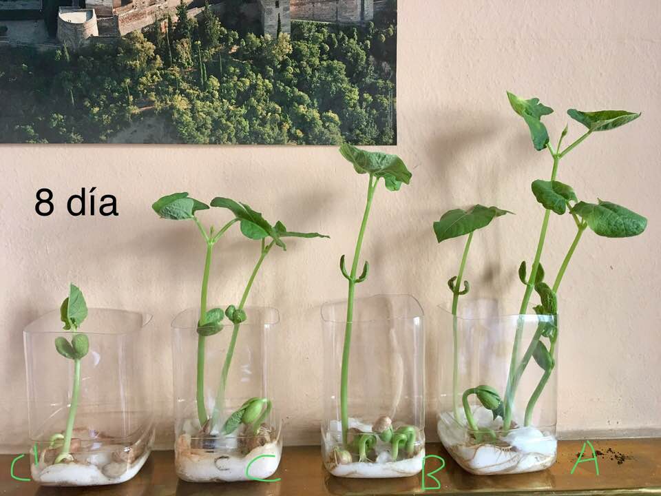 6-Comprobación de los resultados obtenidos durante el tratamiento de plantas durante un tiempo preestablecido. Los alumnos tienen un segundo encuentro con el profesor en el que presentan las plantas crecidas y las hojas tratadas conjuntamente con el testimonio de las secuencias fotográficas de su crecimiento y evolución durante el proceso de tratamiento.