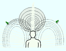 que al percibir a un ser humano se podían apreciar como esferas concéntricas, ocupando