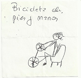 me dibujo subida en una bicicleta y aparece Cristian, entonces ahí