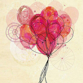 globo cogido con cuerdas por unos personajes pequeñitos. Fue