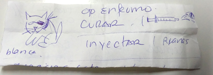 arañazo de otro gato en el ojo izquierdo, e hizo el dibujo y escribió