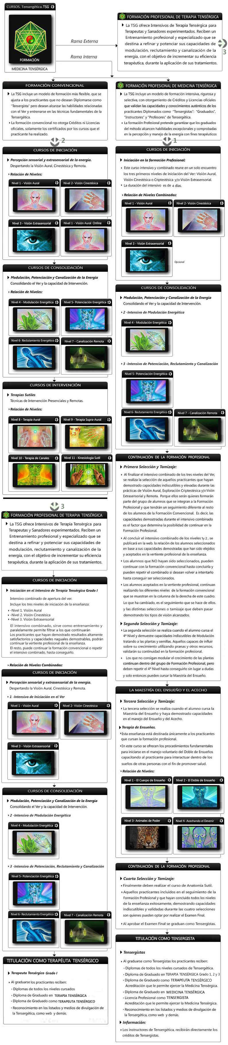 La ~TSG~ o TENSERGÉTICA, Incluye un compendio de técnicas especializadas y un modelo de formación profesional intensivo, riguroso y selectivo para terapeutas interesados en reciclarse y en aprender el método.