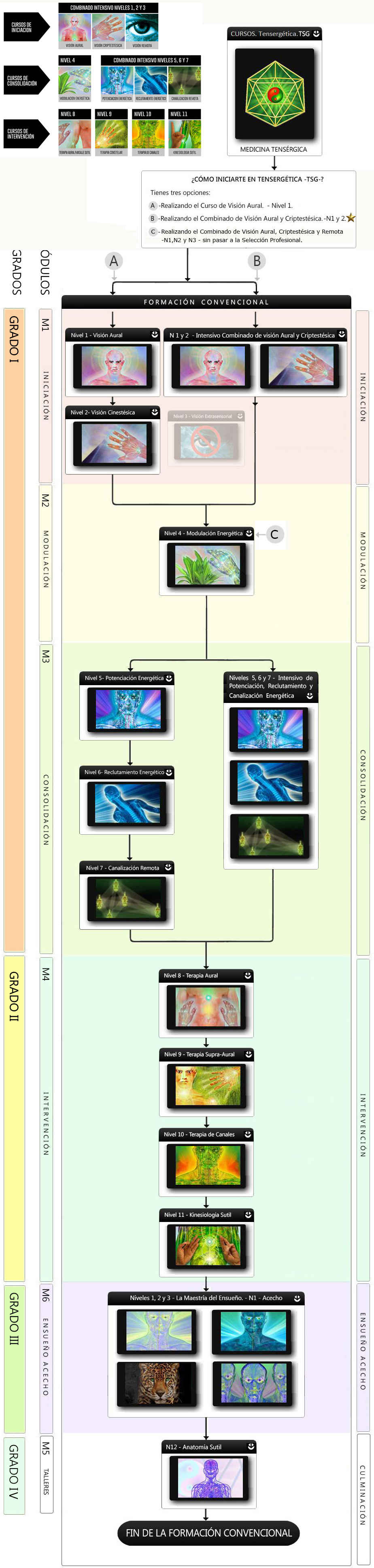 » La FORMACIÓN PROFESIONAL de la Tensergética ~TSG~ cuenta con un modelo formativo especializado en el desarrollo de estados de conciencia ampliada. Utiliza la fase hipnagógica del embeleso para facilitar el tránsito a la segunda atención; sin rituales, ni sugestión, ni consumo de sustancia alguna, directamente.