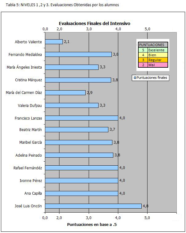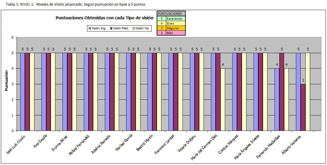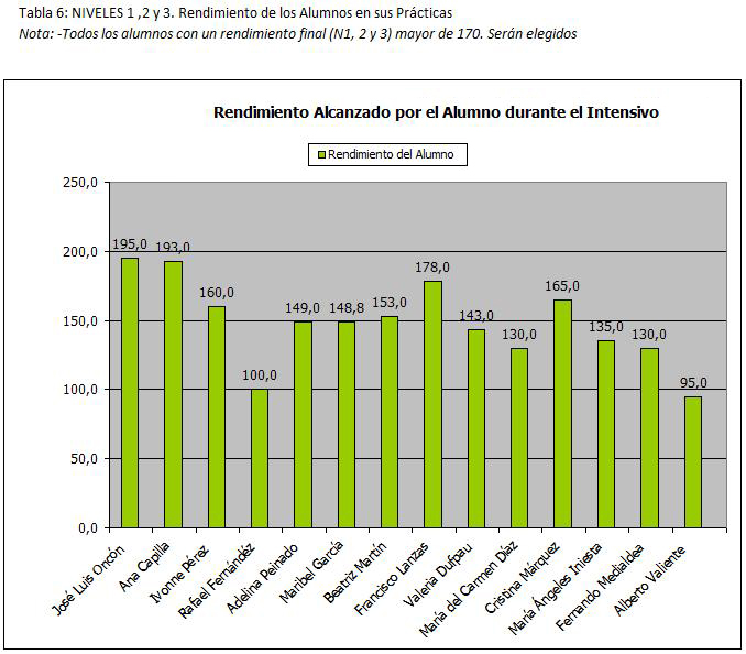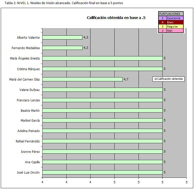 El nivel de rendimiento considerable (linea verde) es relativo y en base del resultado general del grupo