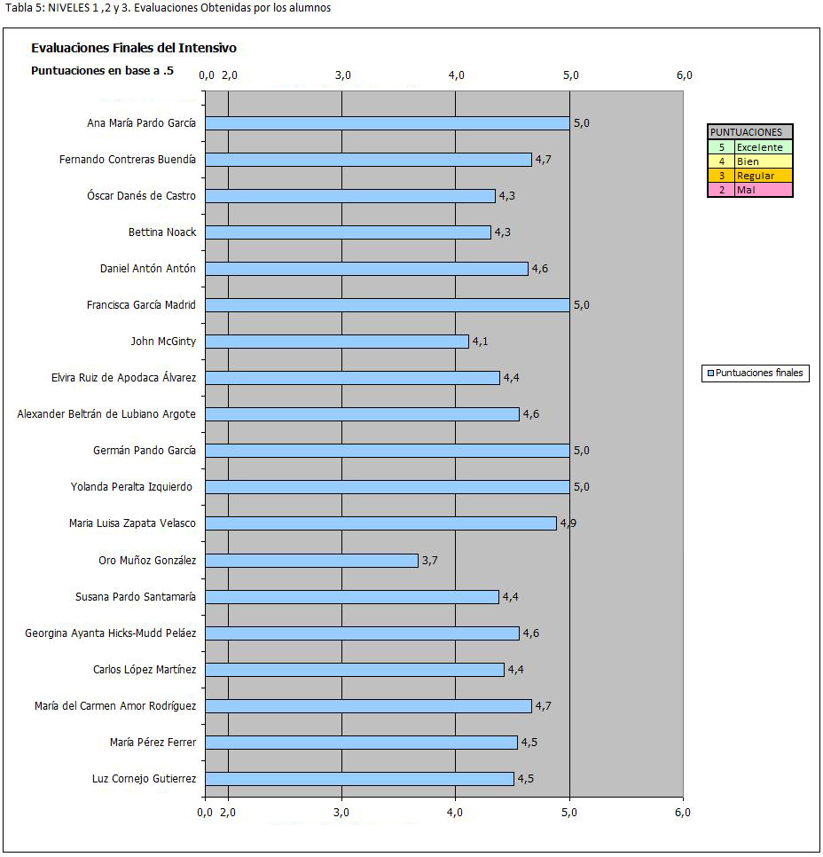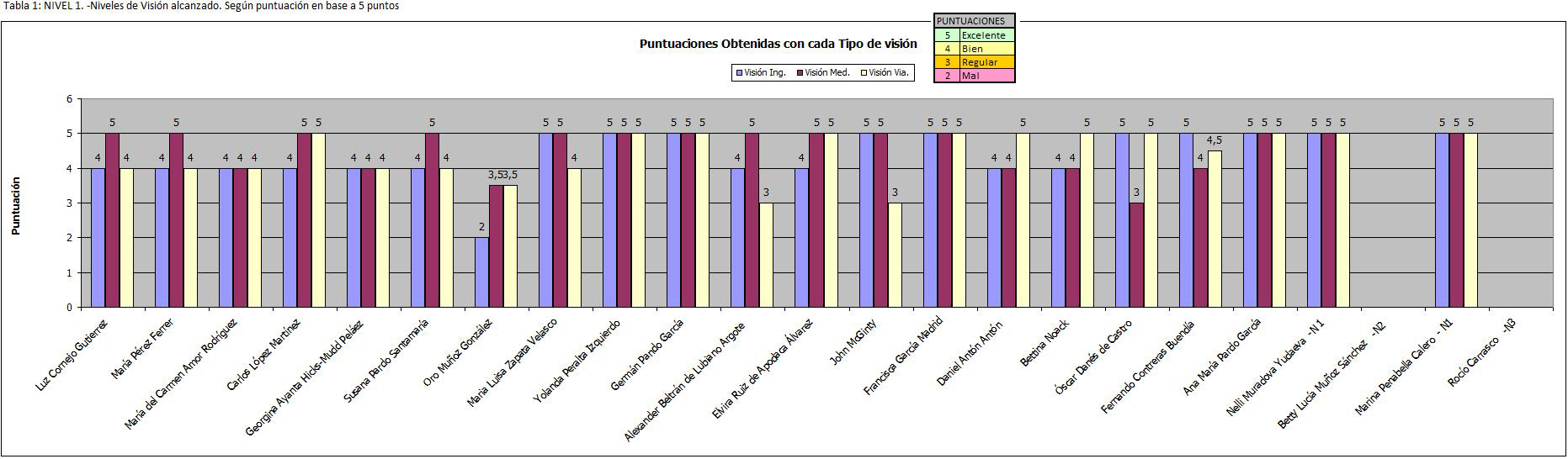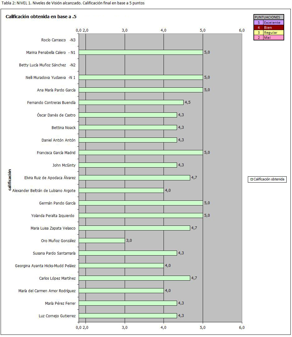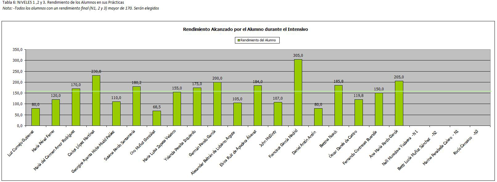 El nivel de rendimiento considerable (linea verde) es relativo y en base del resultado general del grupo