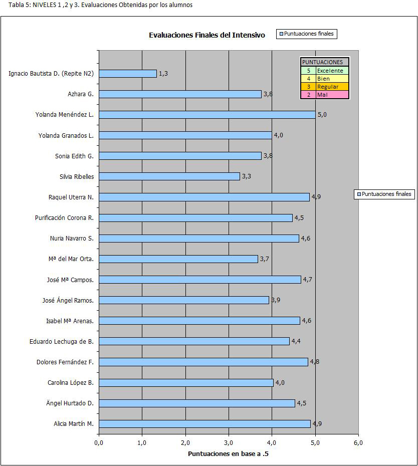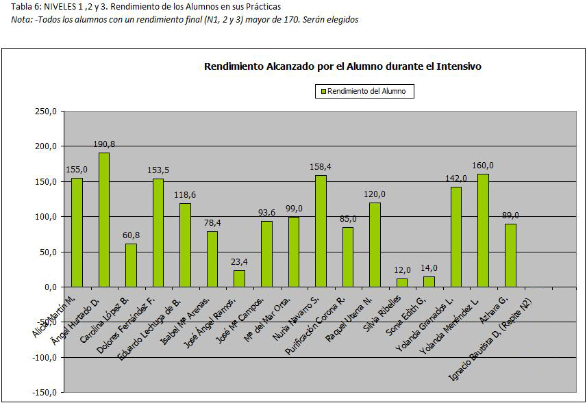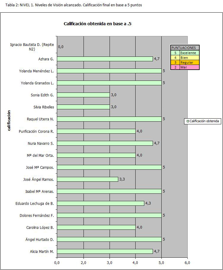 El nivel de rendimiento considerable (linea verde) es relativo y en base del resultado general del grupo