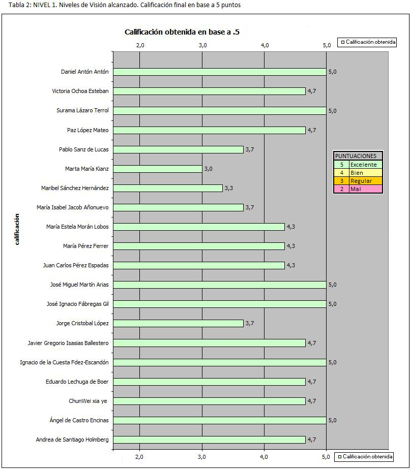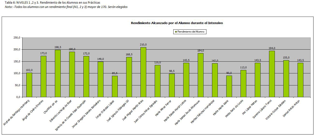 El nivel de rendimiento considerable (linea verde) es relativo y en base del resultado general del grupo