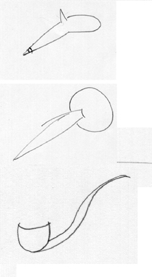 El dibujo de Antonio es el menos evidente. . ¿Recuerdan la forma de un candado abierto?.. una punta del eslabón queda fijo al cuerpo y la otra queda libre volteada hacia afuera. Antonio parece dibujar varios eslabones abiertos unidos a un solo cuerpo, pero ciertamente son varios candados.