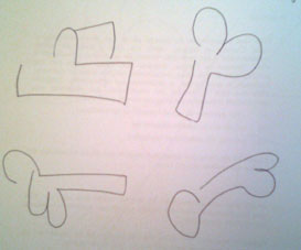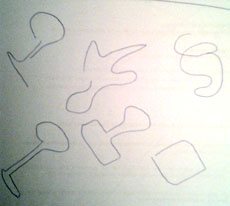 El dibujo de Eulalia no muestra la forma cuadrada del candado, pero su relación es igualmente evidente. En su dibujo de la derecha se muestra el eslabón dentro del cuerpo del candado, con una perspectiva de transparencia. -El dibujo de Antonio es el menos evidente. . ¿Recuerdan la forma de un candado abierto?.. una punta del eslabón queda fijo al cuerpo y la otra queda libre volteada hacia afuera. Antonio parece dibujar varios eslabones abiertos unidos a un solo cuerpo, pero ciertamente son varios candados.