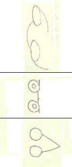 Resulta interesante el Dibujo de isabel. Aparecen tres formas algo paralelas entre sí, que recuerdan perfiles humaniformes por las aparentes cabezas y los hombros. Lo interesante es que las cucharas de la fotos igualmente dibujan sus perfiles contrastando con el fondo azul e igualmente sus palas recuerdan "cabezas", por eso se llaman así. Las palas son las cabezas de las cucharas.
