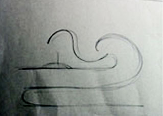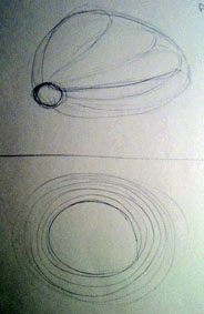 El dibujo inferior de María representa círculos concentricos y recuerda la visión superior de la carcaza de la brújula con sus anillos del sistema de suspensión Cardan.