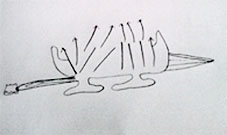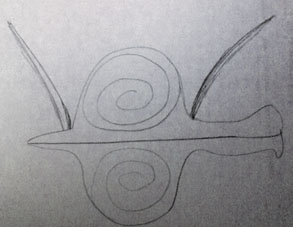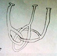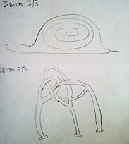Puede que el dibujo de Mili no sea muy significativo, pero llama la atención las formas entrelazadas que refleja ensu dibujo inferior y que recuerdan al grupo de Anzuelos, como mostramos debajo pero de manera invertida