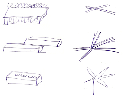 El dibujo rectangular de Teresa recuerda al estuche, y me pregunto si la espiral adosada al borde representa la cremallera del cierre de las tapas. |