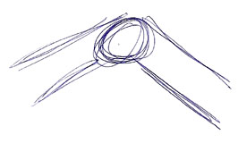 Pensamos que el dibujo de Teresa pudiera representar en cierta forma y de manera simplificada la posicion de las manos converegiendo y sosteiendo el jarrón.