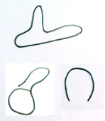 En los dibujos que arriba se muestran se destaca la tendencia de casi todos a dibujar lazos, incluso varios lazos y considerando que son varios los eslabones unidos entre sí, pues resulta significativo. Dibujan lazos cerrados sobre sus nudos o sobre el cuadrado de la goma de un lápiz (dibujo de Haysa) o arcos abiertos a modo de herraduras como se muestra en los dibujos de Daniel, y Eulalia. En todos los casos la similitud con el candado o su eslabón puede ser asumida. |