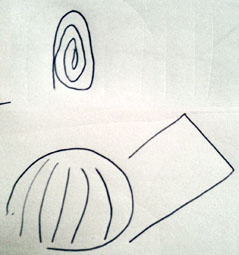 El dibujo inferior de María representa círculos concentricos y recuerda la visión superior de la carcaza de la brújula con sus anillos del sistema de suspensión Cardan.