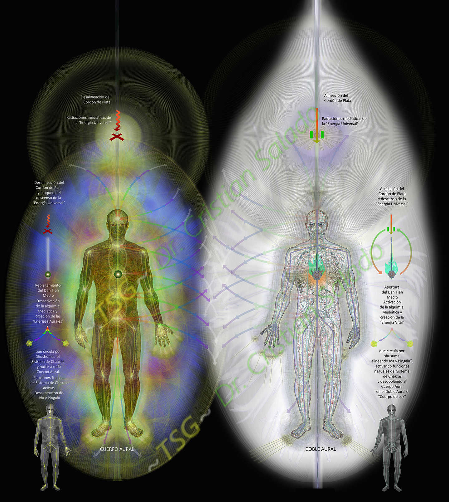 » Se detallarán los cuerpos sutiles y sus dobles energéticos o naguales, relacionados con los planos inmanentes de la realidad sutil y perceptibles con visión aural; así como la relación entre fuentes primordiales internas de energía y su relación con las fuentes externas de Energía Universal .