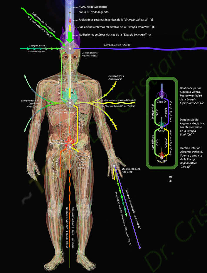 » El terapeuta puede desplegar la configuración propia de los niveles más óptimos de integralidad energética de manera espontanea o voluntariamente y la facilidad con la que consigue ese efecto alineador igualmente depende del gradiente de demanda del paciente.